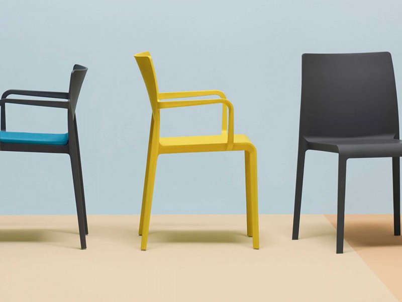 Poltrona impilabile in polipropilene fiberglass trattato anti-UV e colorato in massa. Dotata di piedini antiscivolo. Cuscino disponibile su richiesta. Finitura matt.