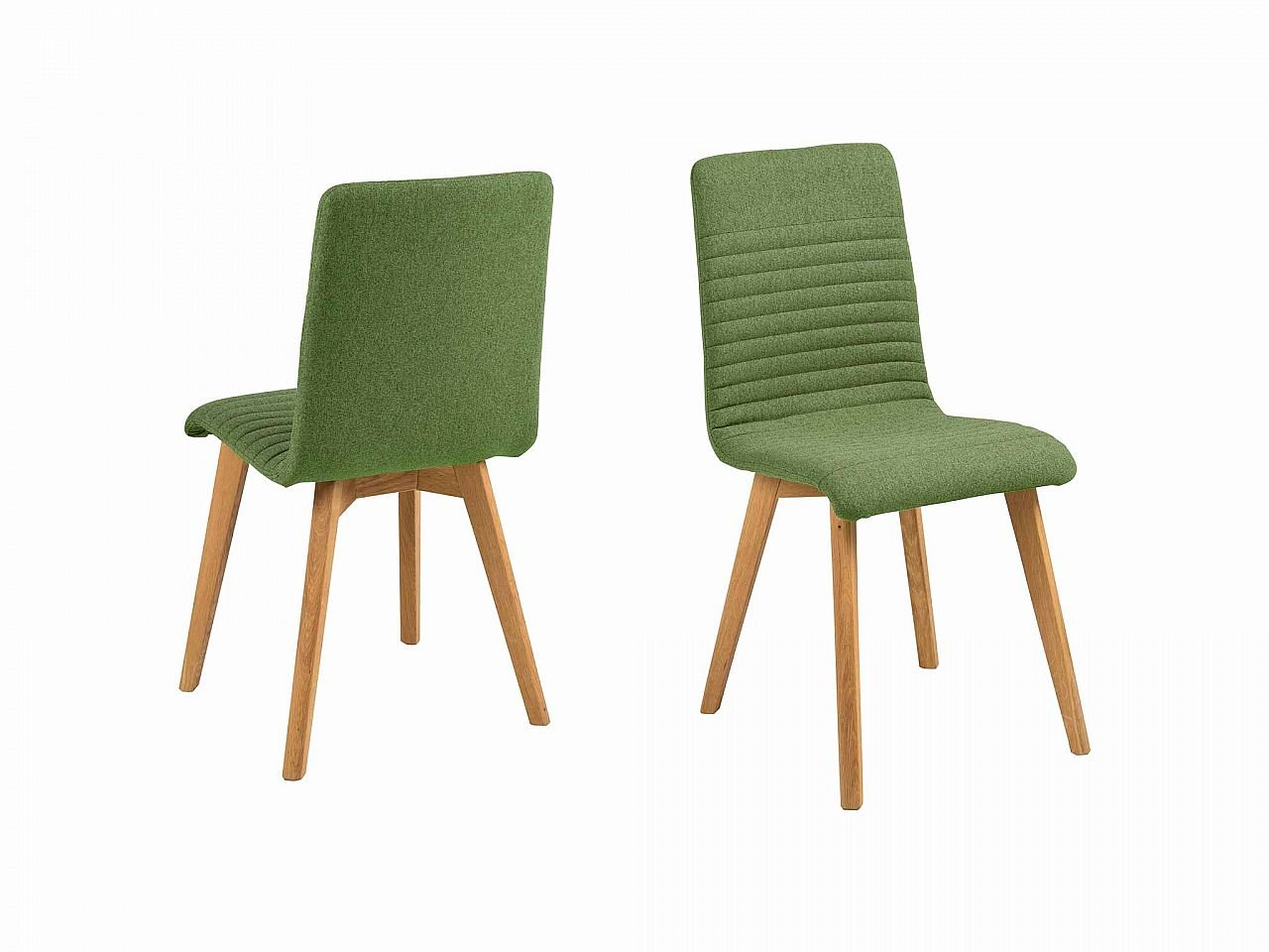 Base 4 gambe realizzata in legno massello di rovere, con seduta e schienale in tessuto disponibile in 3 diverse varianti di colore: grigio chiaro, verde e antracite.