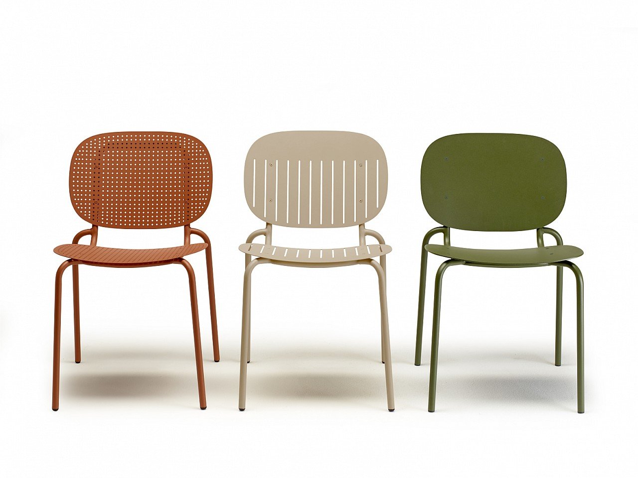 Sedia Si-Si Dots di Scab Design con scocca in lamiera zincata e verniciata e struttura in acciaio tubolare ø 20 mm, zincato e verniciato a polvere.