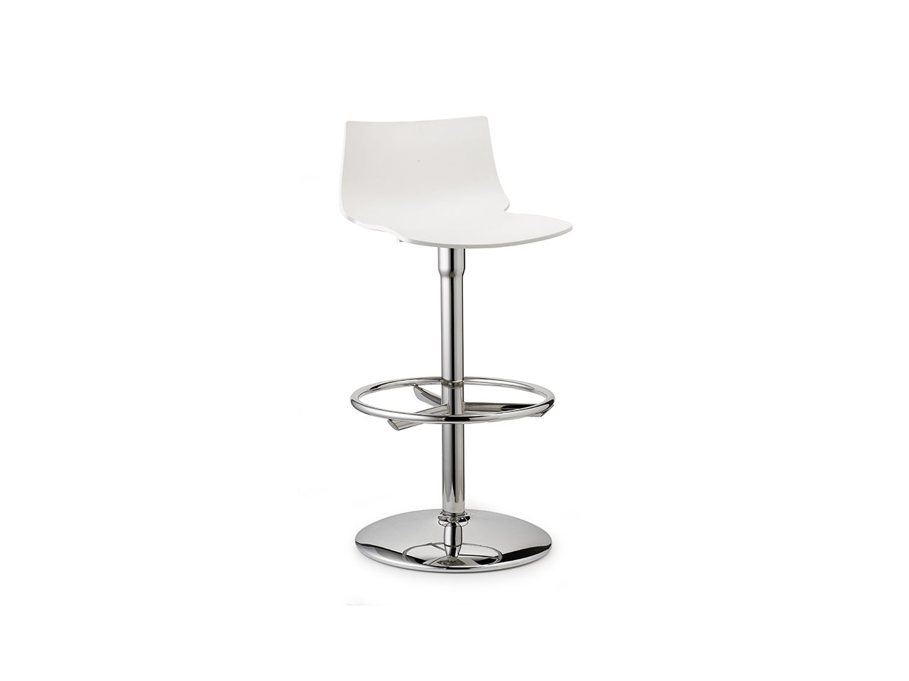 Sgabello bar girevole ad altezza fissa con meccanismo di ritorno automatico.