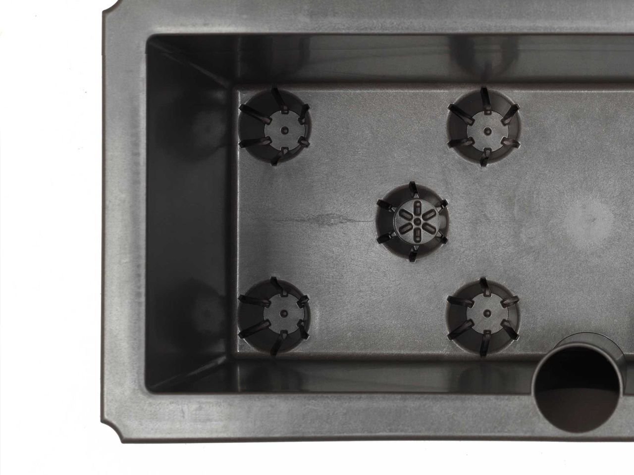 Il modulo è costituito da elementi grigliati in plastica rigenerata, facilmente agganciabili tra loro attraverso un sistema di clips che non prevede l'uso di viti.